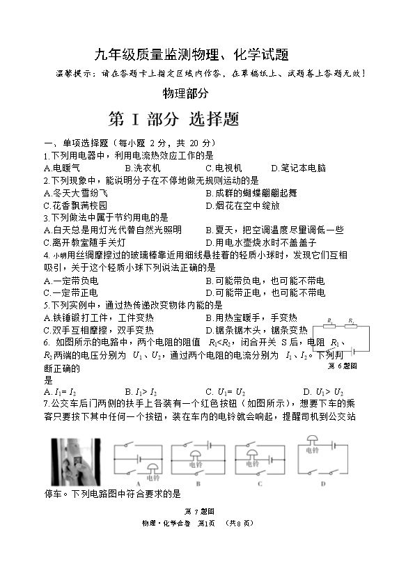 长春市二道区1长春市,二道区|2018年12月九年级物理期末质量检测试题2019年01月29日/UploadFiles/nopic.gif