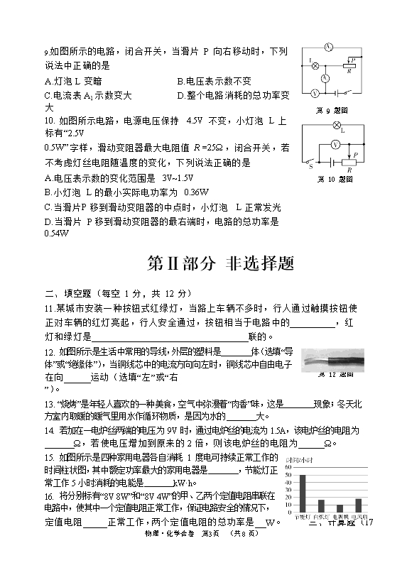 9.如图所示的电路,闭合开关,当滑片 P 向右移动时,下列说法中正确的是