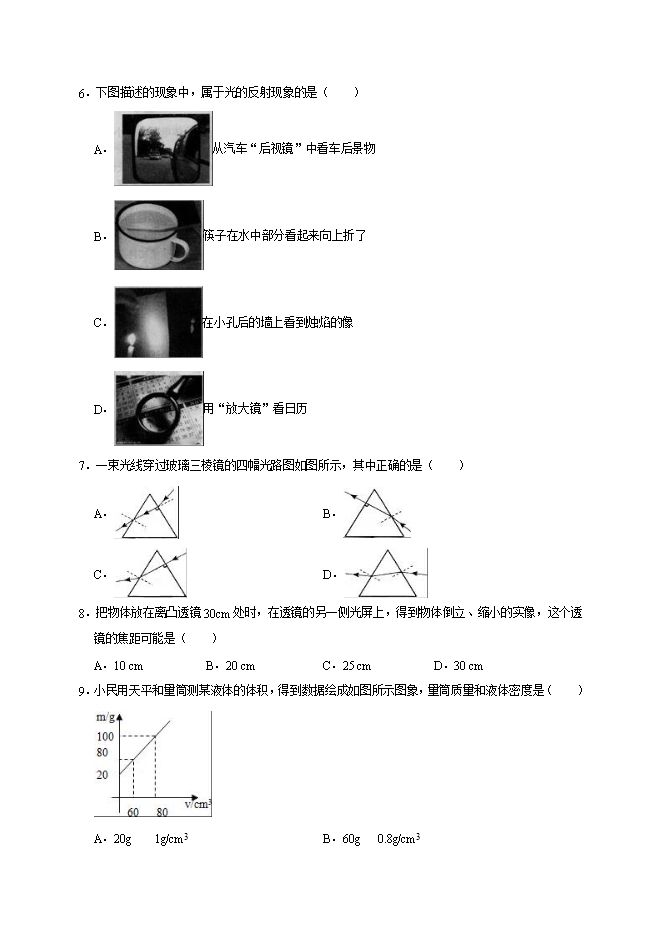 【点评】本题考查了光沿直线传播现象的应用、光的反射现象的应用以及光的折射现象的应用,都是基础知识。解答此题的关键是明白各种光学现象的实质。