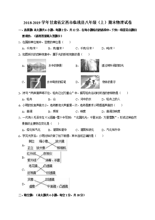 2018-2019学年甘肃省定西市临洮县八年级(上)期末物理试卷(解析版)