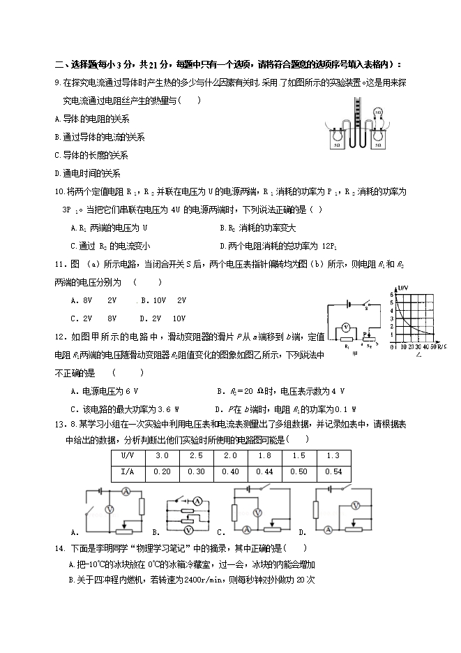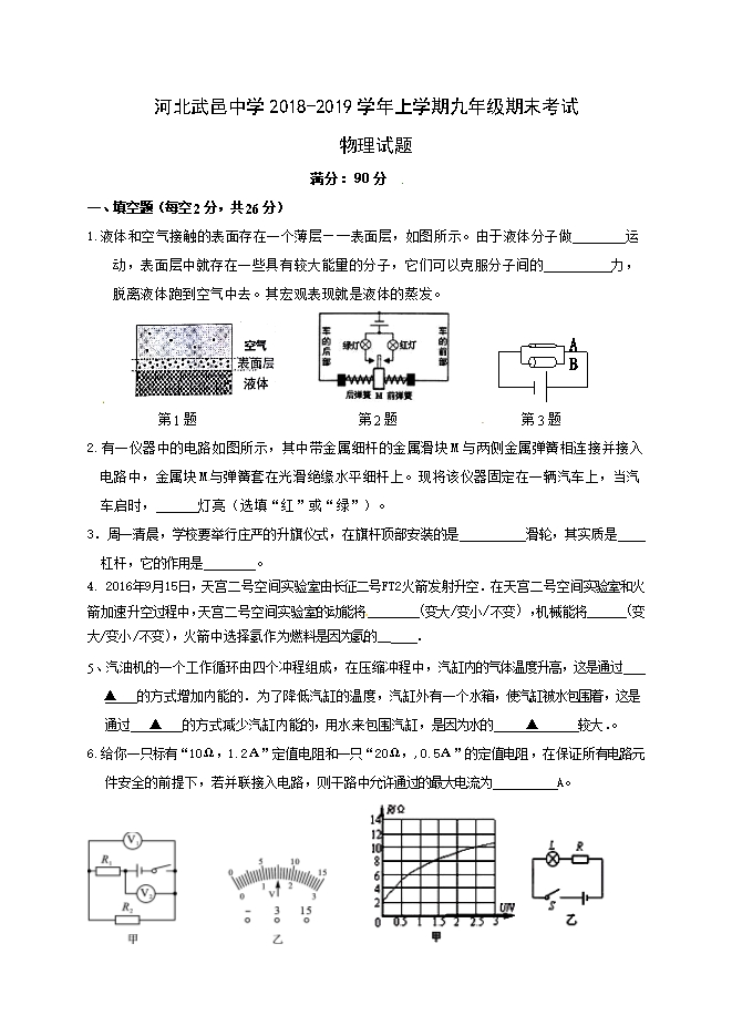 【全国百强校】河北省武邑中学2019届九年级上学期期末考试物理试题及答案