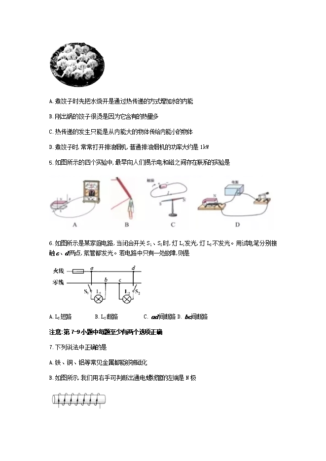 4.饺子是我们东北人喜爱的一种食品,如图所示为一盘刚出锅的虾仁水饺,下列有关说法中正确的是