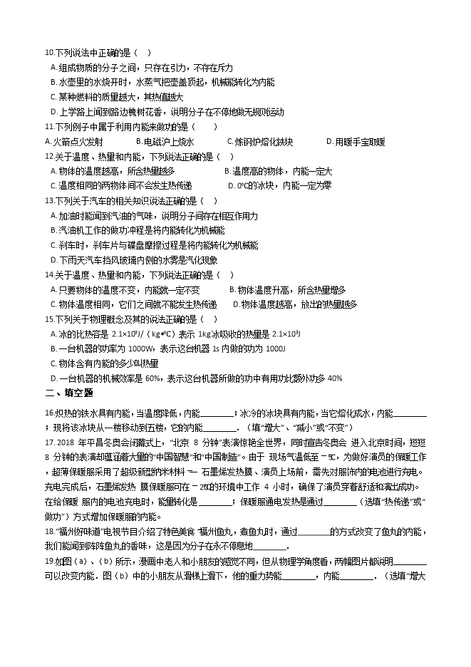 - 1522025-2026人教版物理九年级全一册培优卷:第十三章 内能(附解析)