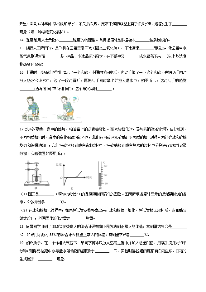 2. 把一块0℃的冰投入0℃的水中,周围的气温也是0℃,过了一段时间,情况如何( )