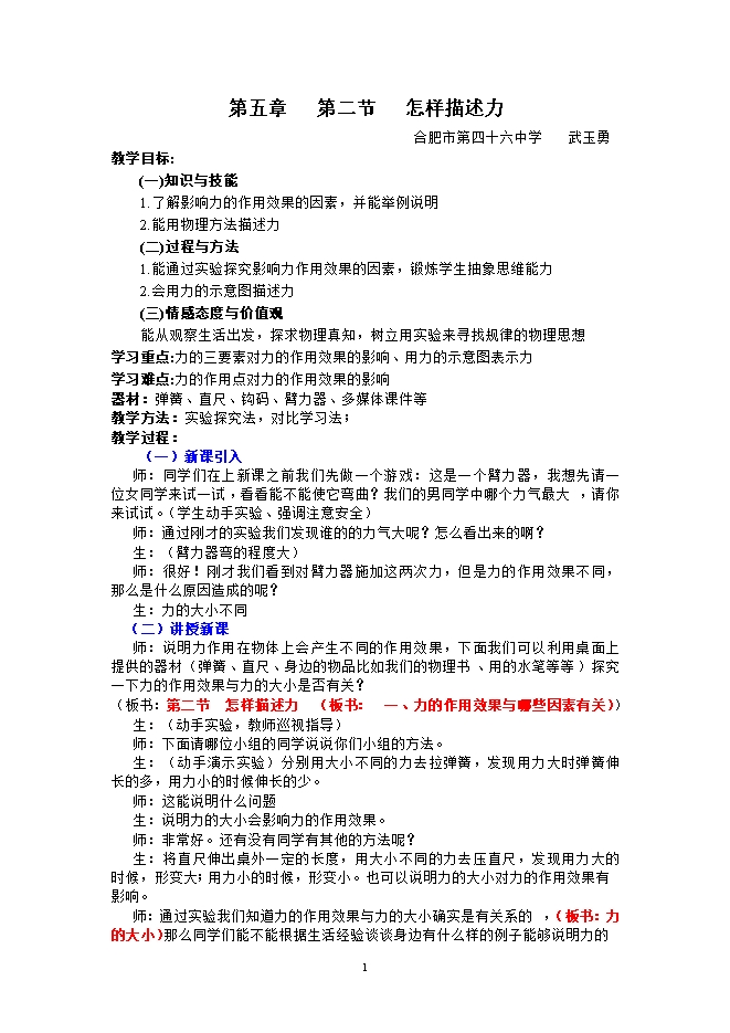 合肥市第四十六中学:《6.2怎样描述力》PPT+教学设计