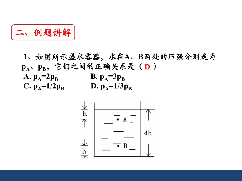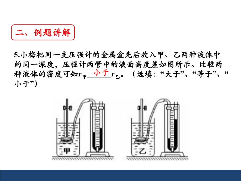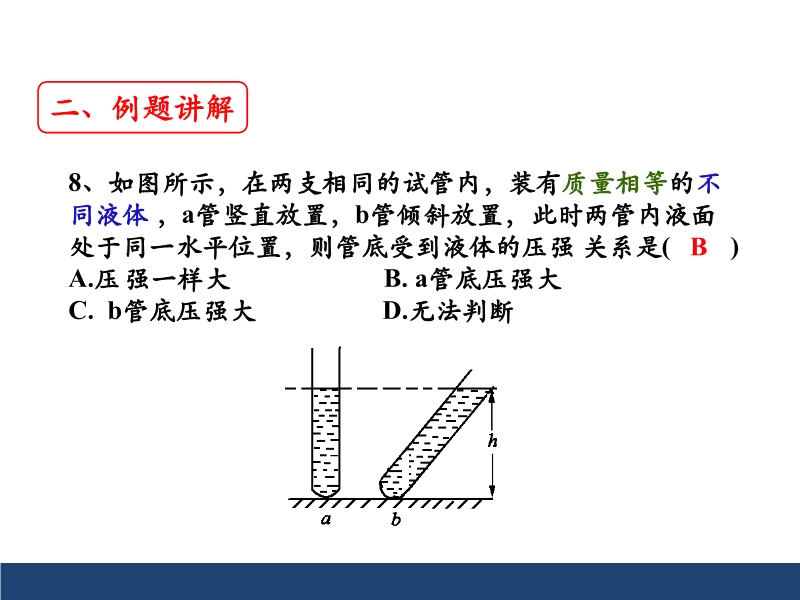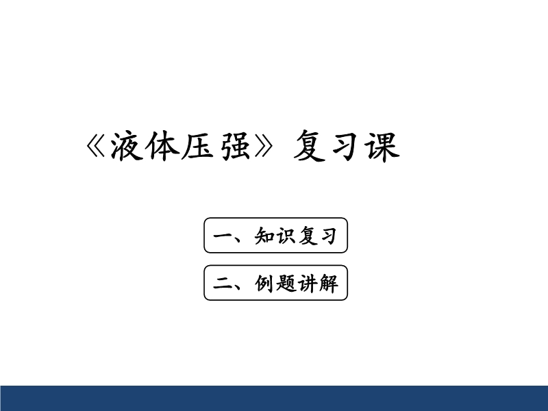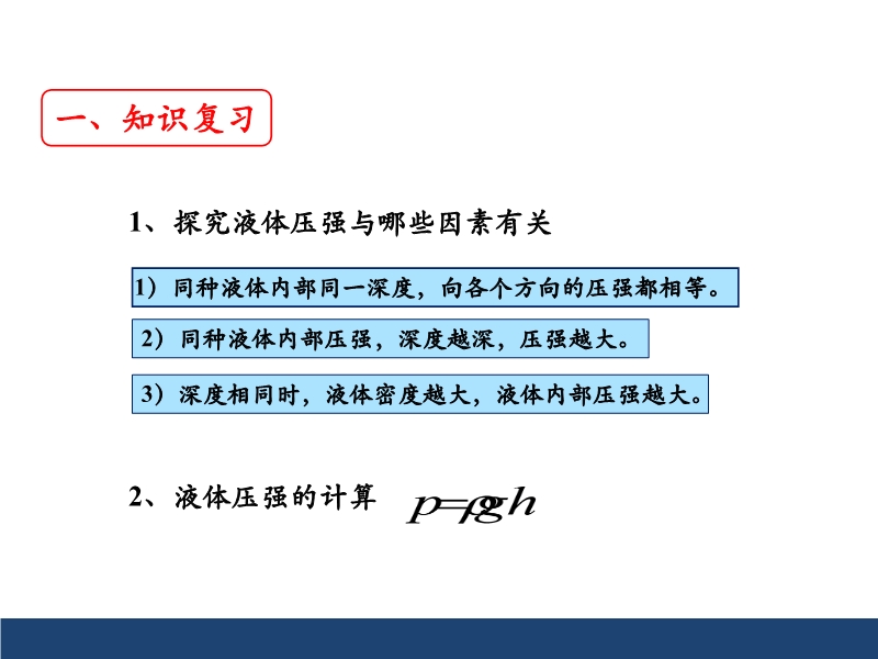 【内容简介】人教版:《9.2液体的压强》PPT习题课件,课件15张幻灯片,课件首先复习了液体压强的知识点,通过习题总结归纳液体压强常见的题型,课件也可用在中考复习。