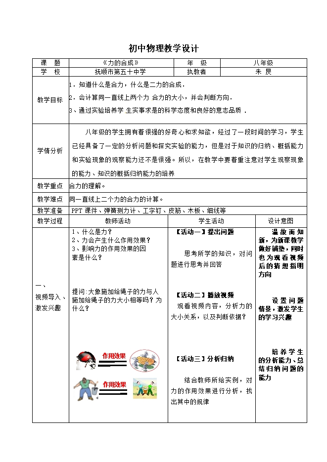 沪科版《7.2力的合成》ppt课件+教学设计(抚顺市第五十中学)
