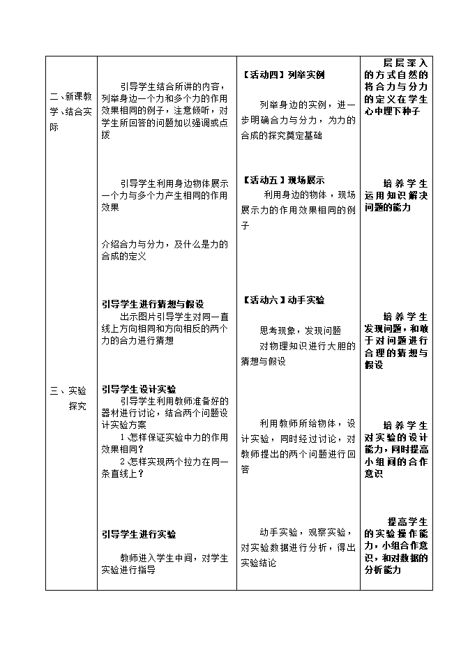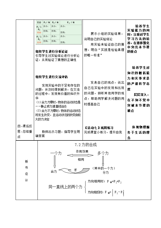- 557.2 力的合成--2024新沪科版物理八年级下学期科学素养新教学设计(附教学反思)