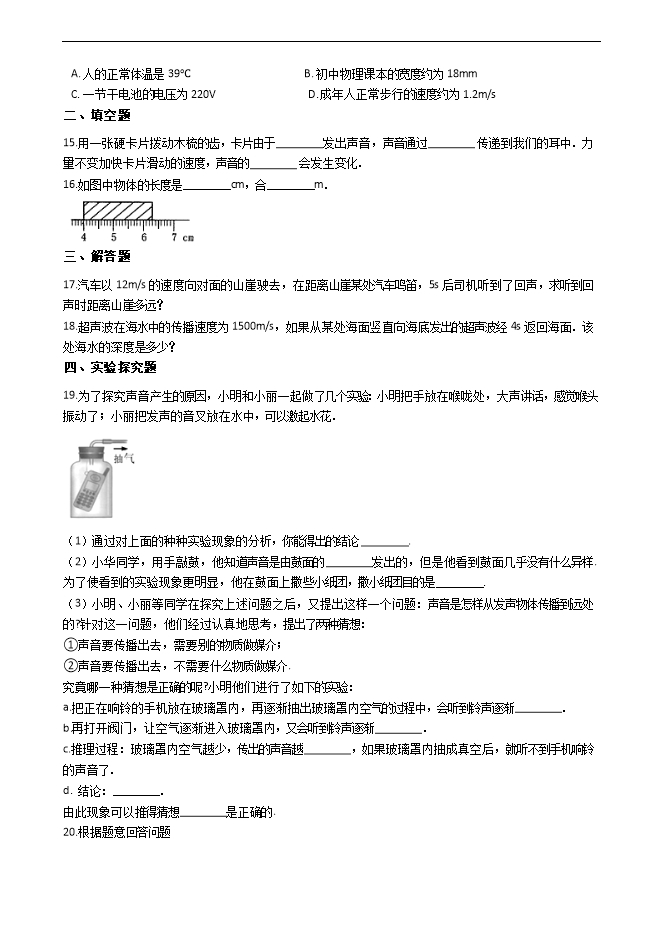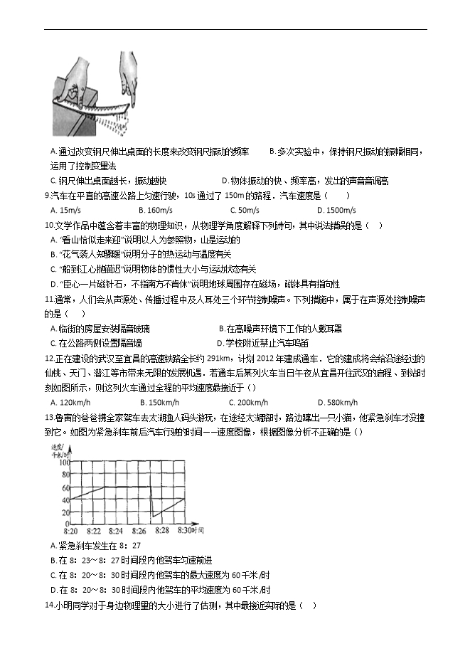 8.如图是“探究影响音调高低因素”的实验装置.下列说法错误的是( )