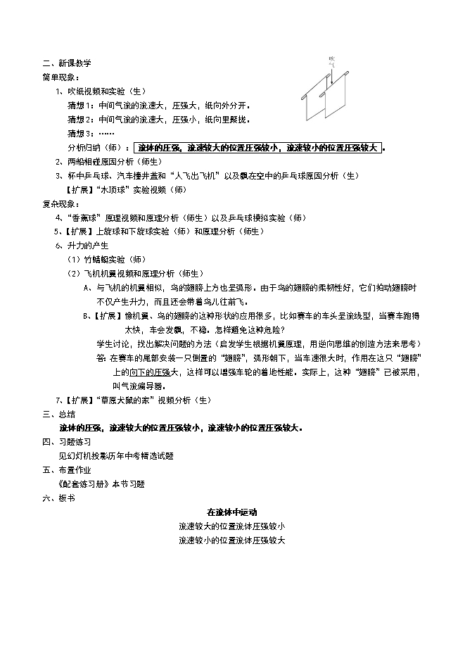- 4192019春教科版八年级下册物理教案:10.1在流体中运动(附教学反思)