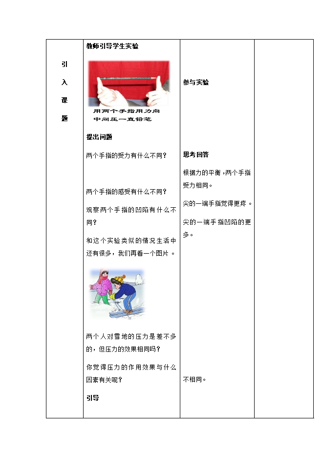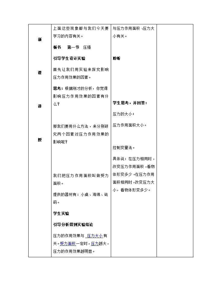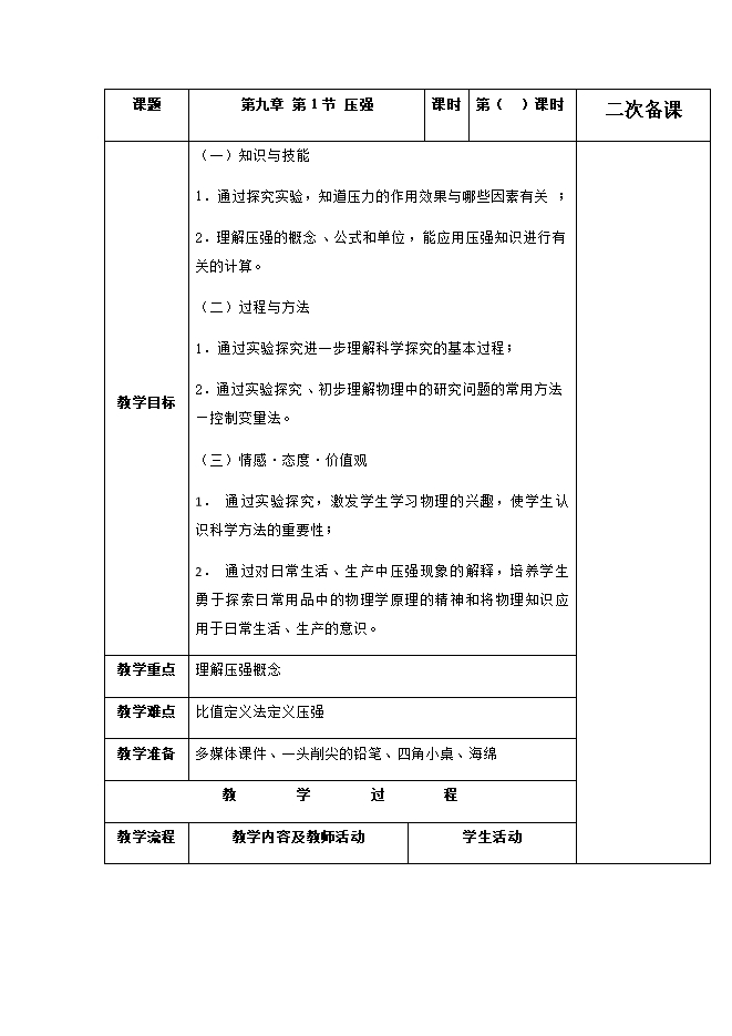 2018-2019人教版八年级物理下册《9.1压强》教学设计