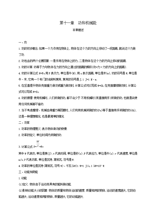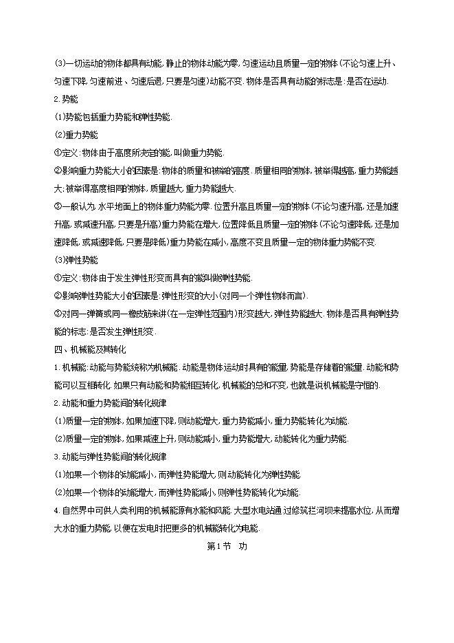 1.机械能:动能与势能统称为机械能.动能是物体运动时具有的能量,势能是存储着的能量.动能和势能可以互相转化.如果只有动能和势能相互转化,机械能的总和不变,也就是说机械能是守恒的.