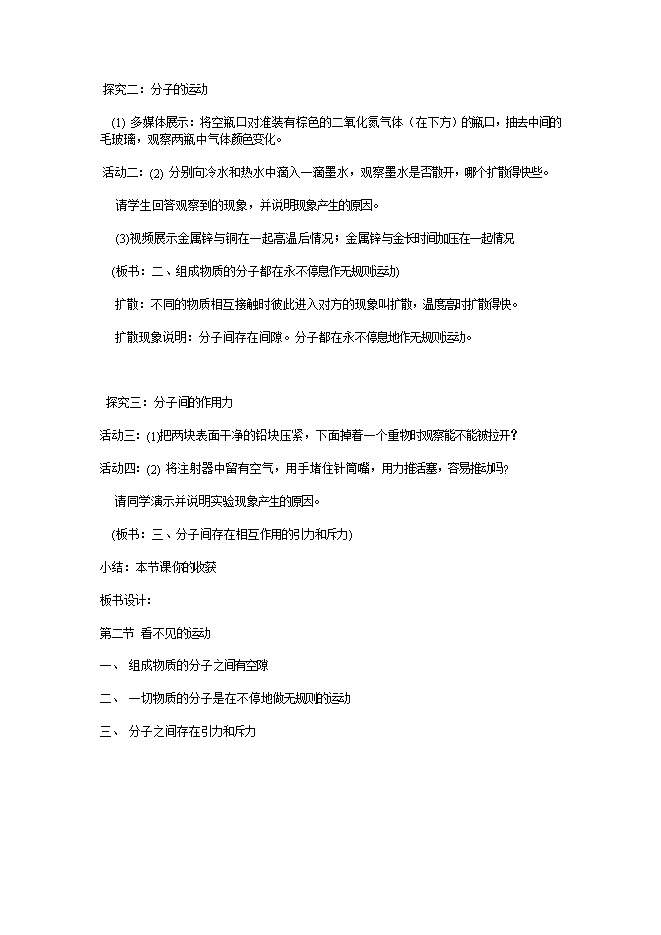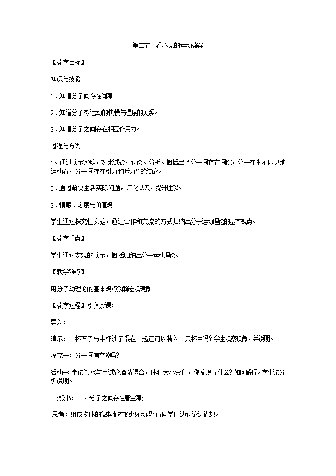 - 25712.2 看不见的运动--2024新沪科版物理八年级下学期科学素养新教学设计(附教学反思)