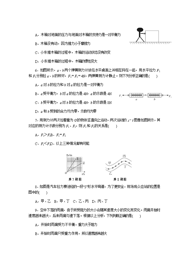 5.如图所示,小东用力推放在水平地面上的木箱,木箱静止不动,下列说法正确的是( )