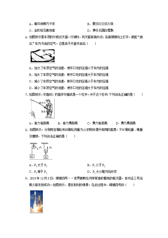 C.金秋桂花遍地香 D.寒冬北国白雪飘