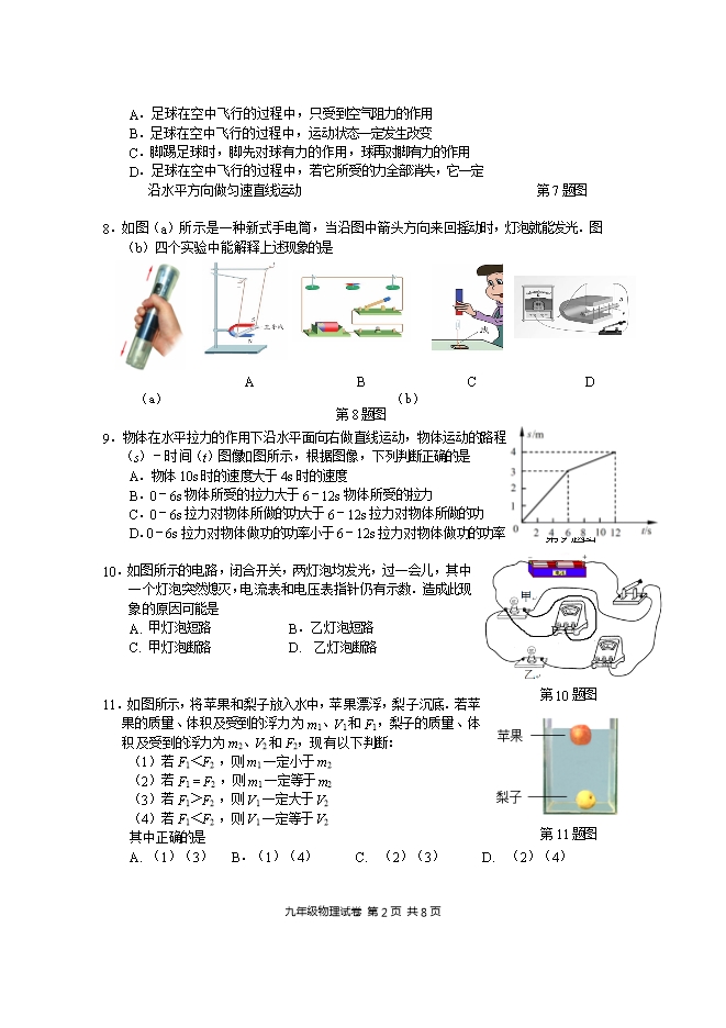 7.如图是足球运动员踢足球时的情景,下列说法正确的是