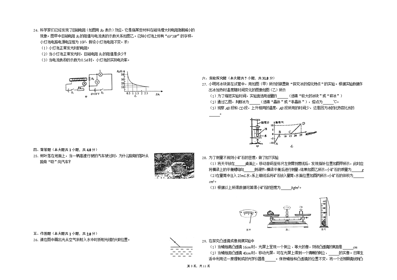 C. 光在真空中的传播速度是 D. 1标准大气压下,水的沸点是