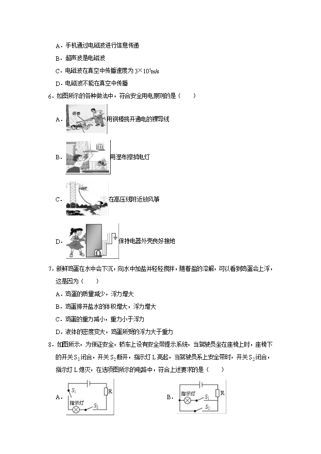 2019年四川省成都市双流区中考物理一诊试卷(解析版)