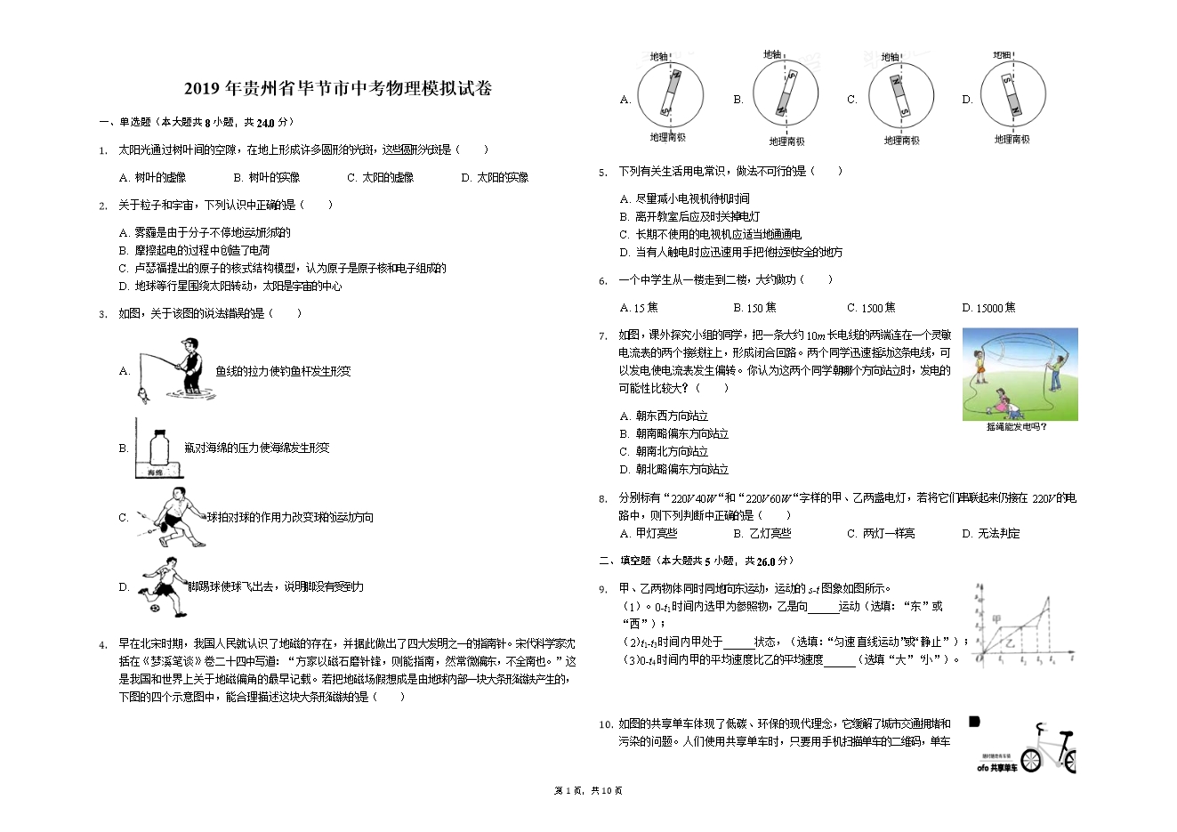 2019年贵州省毕节市中考物理模拟试卷(解析版)