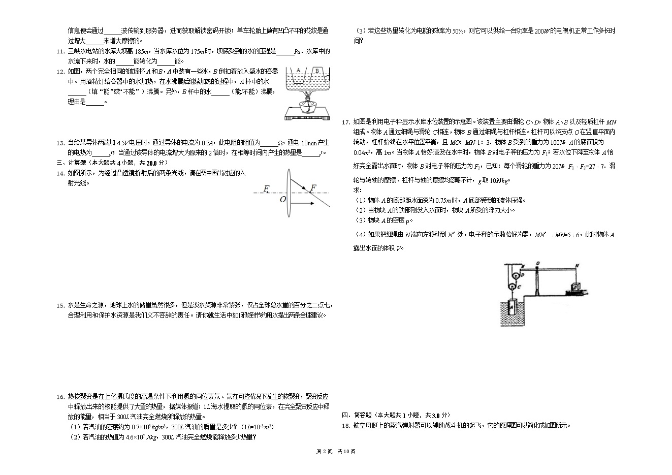 - 上一份试卷:2019年贵州省安顺市中考物理模拟试卷(解析版)