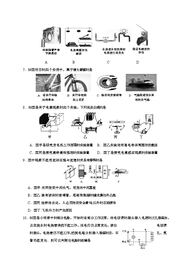 9.图中现象不能用流体压强与流速的关系来解释的是