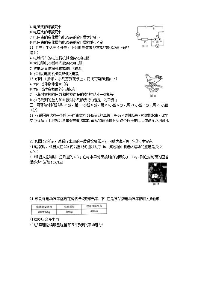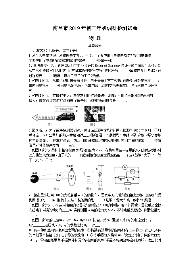 江西省南昌市2019年初三年级调研检测物理试卷及答案