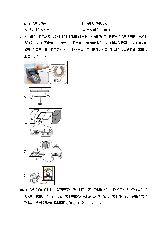 D、食品夹在使用过程中,动力臂小于阻力臂,是费力杠杆。