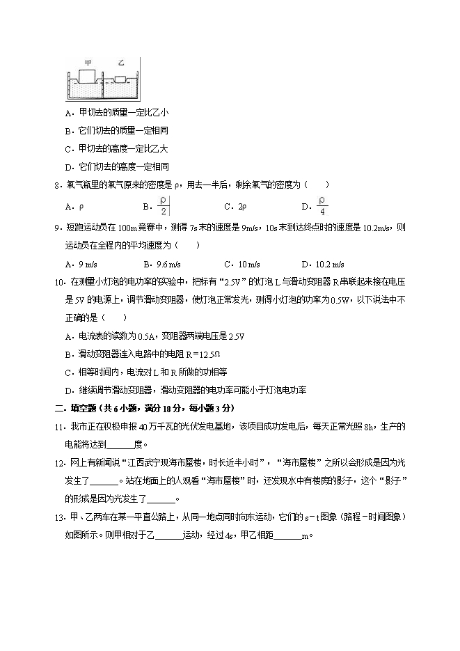 2.小红同学在做“探究凸透镜成像规律”的实验时,烛焰在光屏上成一个清晰的像,如图,下列说法正确的是( )
