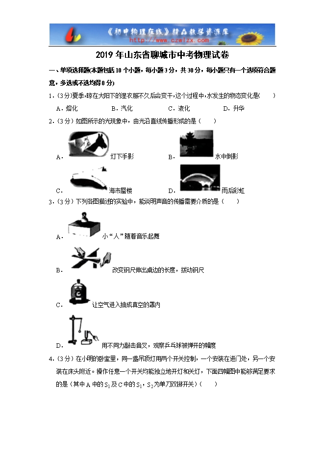 2019年山东省聊城市中考物理试题(word版,含解析)