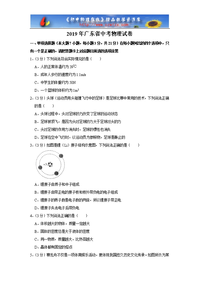 2.【解答】解:A、“头球”改变足球运动方向,说明力可以改变运动状态。故A正确;