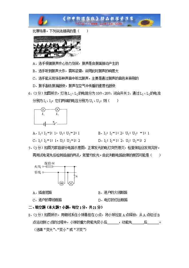 5.【解答】解:A、发声体都在振动,鼓声是由于鼓面的振动产生的。故A正确;