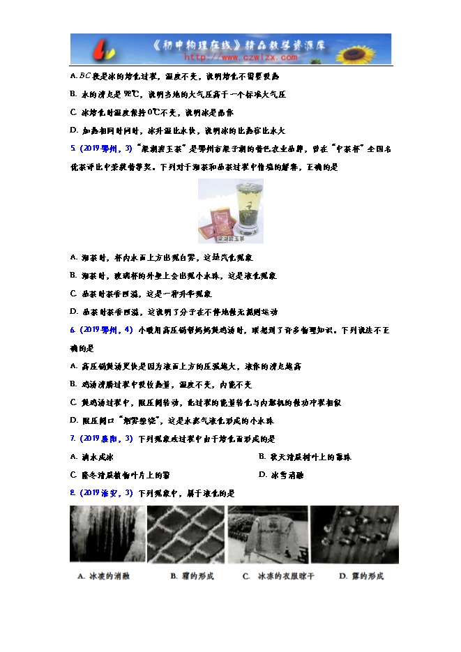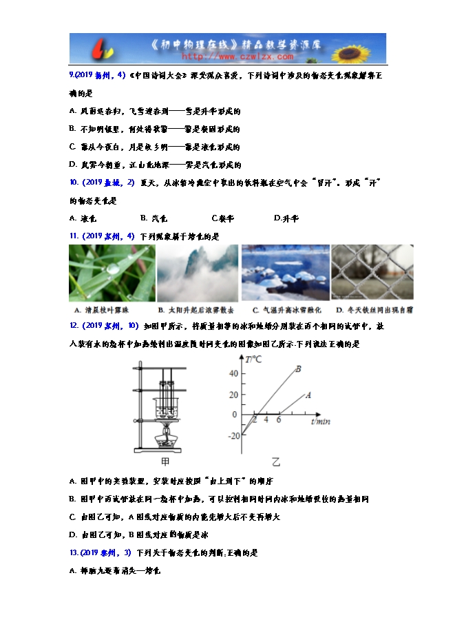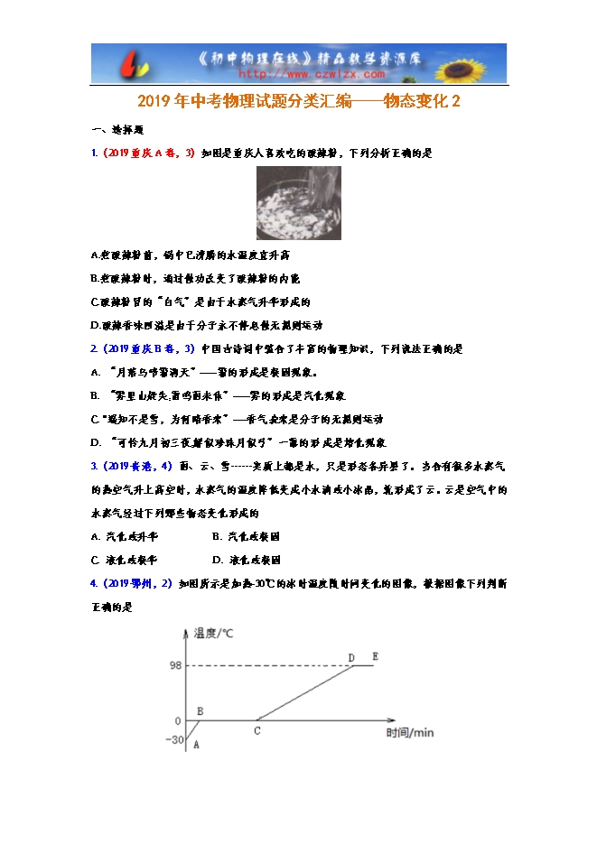 2019年中考物理试题分类汇编(第03期):物态变化专题2