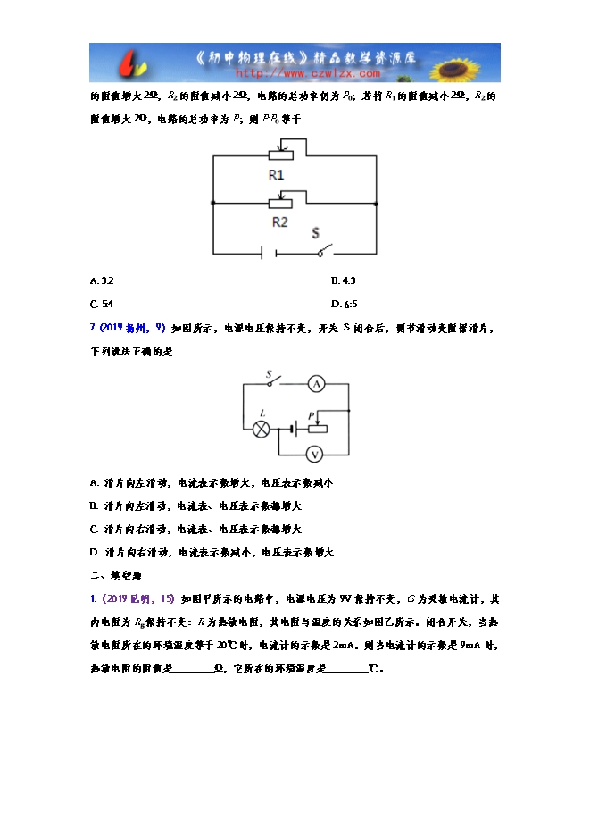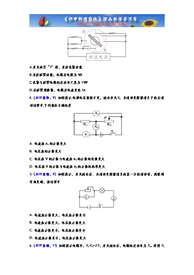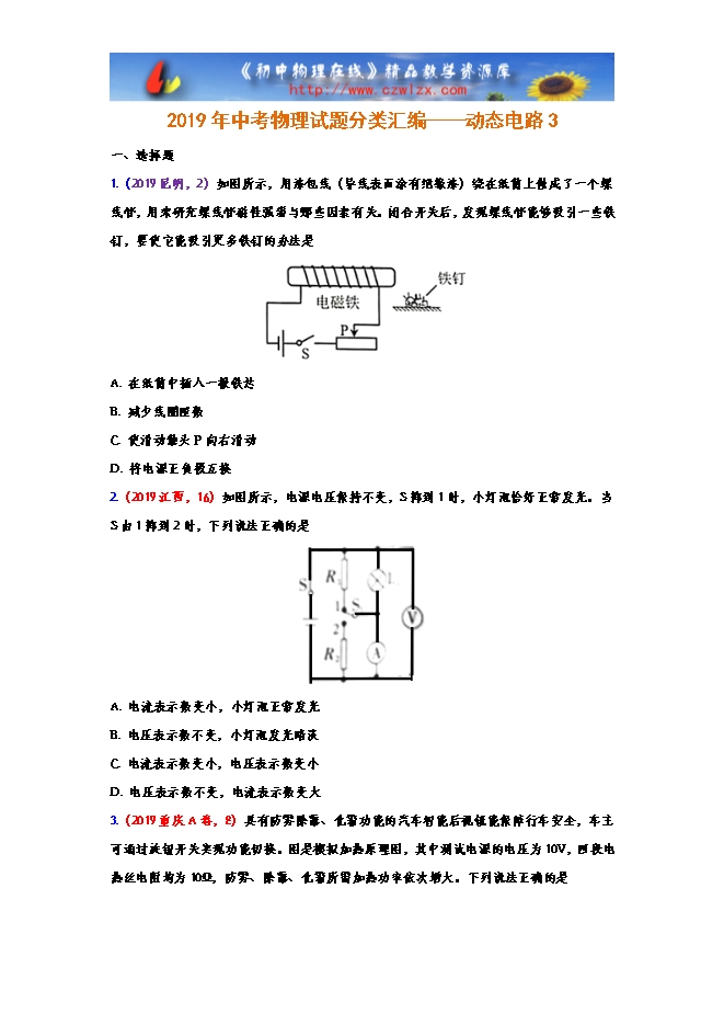 2019年中考物理试题分类汇编(第03期):动态电路专题3