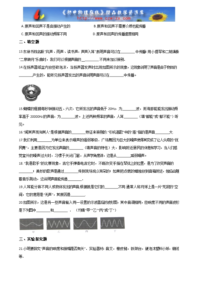- 11572022-2023学年度沪科版八年级物理培优练习:第3章 声的世界(附答案)