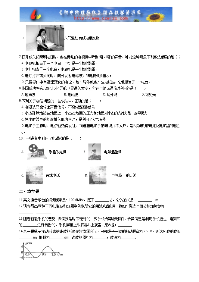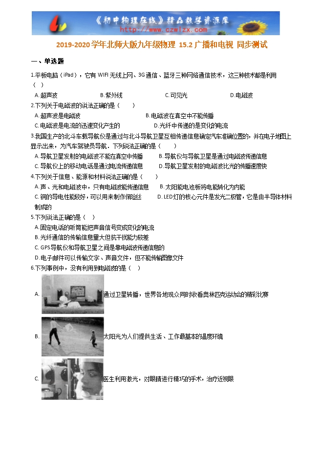 2019-2020学年北师大版九年级物理 15.2广播和电视 同步测试题及解析