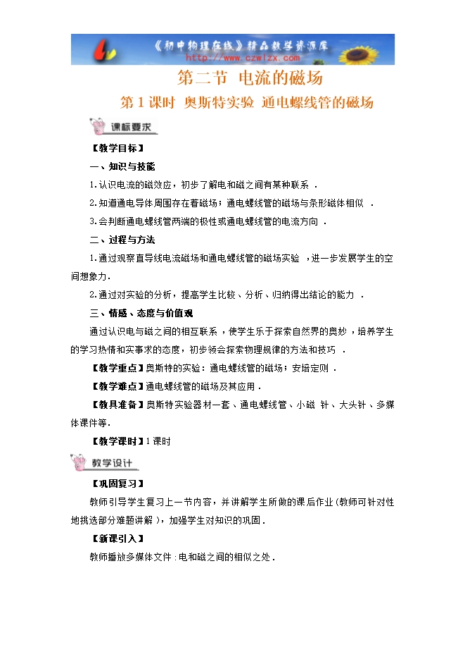 【内容简介】2019沪科版九年级物理全册教案+课件:17.2电流的磁场