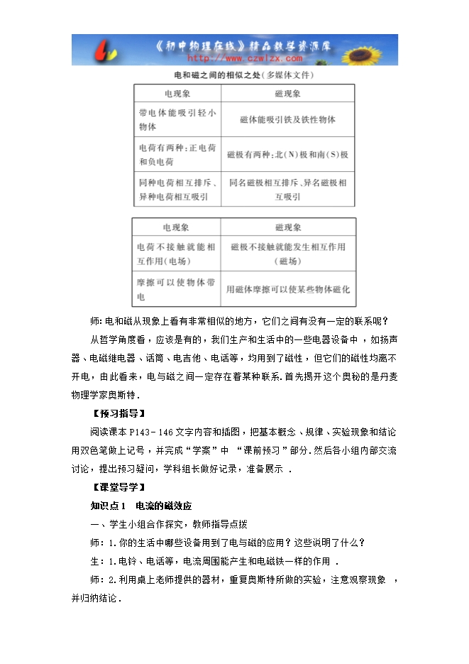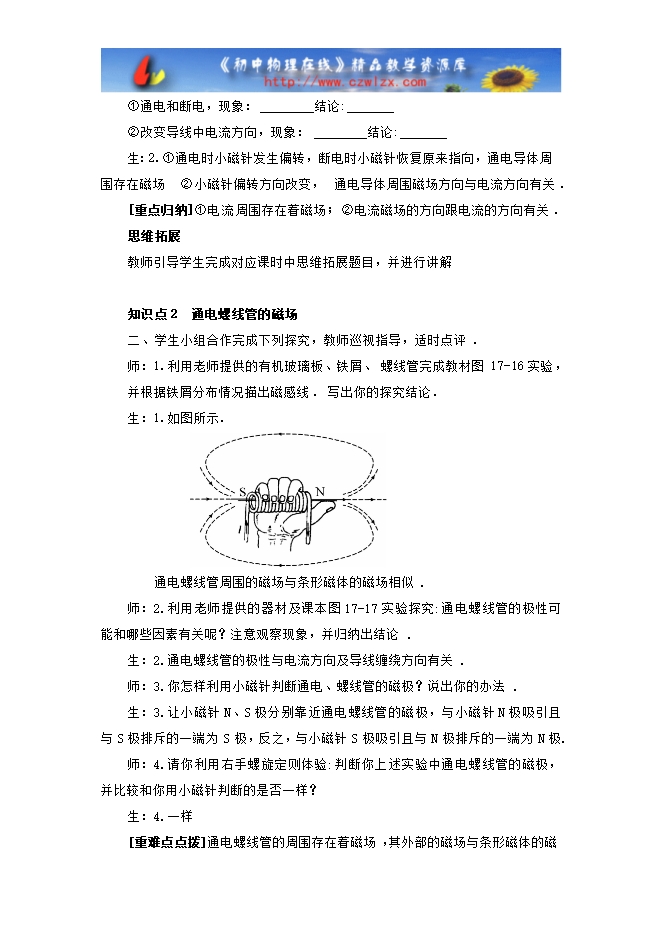 2019沪科版九年级物理全册教案+课件:17.2电流的磁场