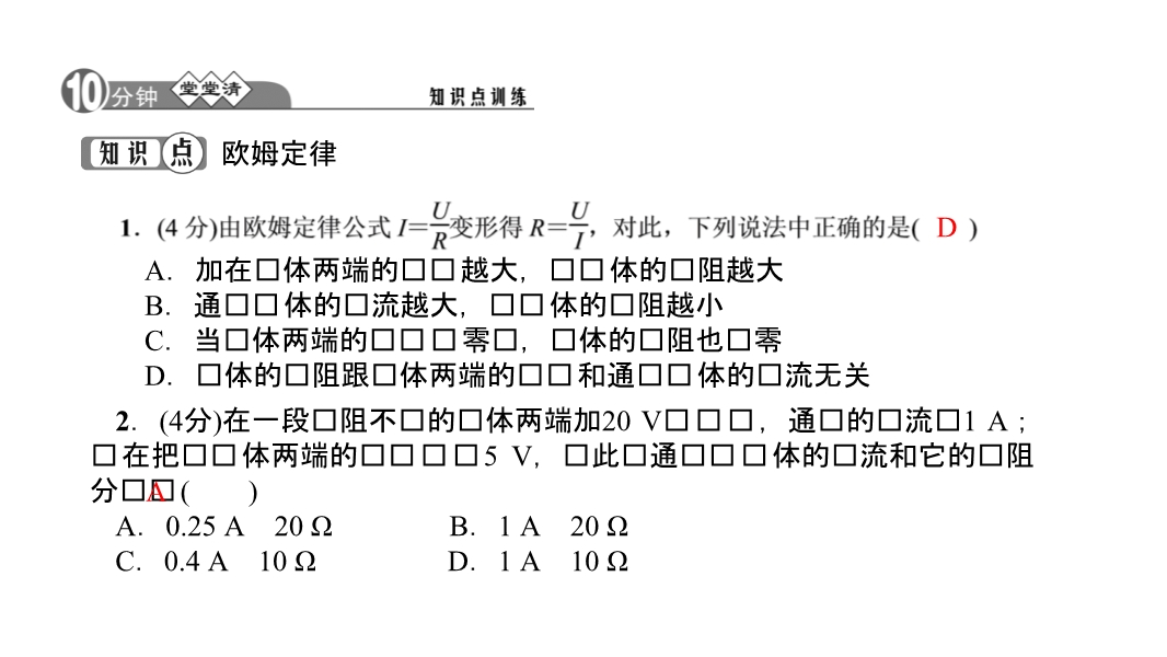 - 692023-2024人教版九年级物理同步练:《17.3电阻的测量》同步练2(附答案)