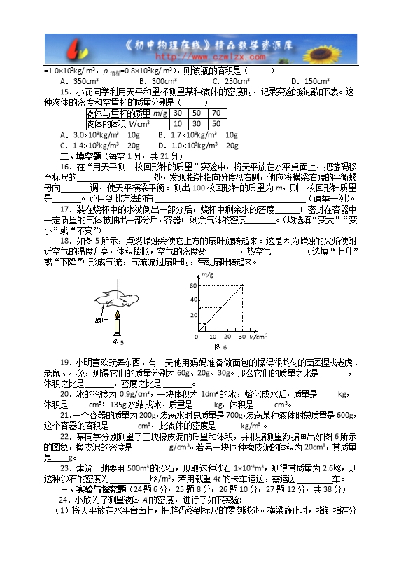 - 652024教科版八年级上册《第6章 质量与密度》单元测试卷及解析