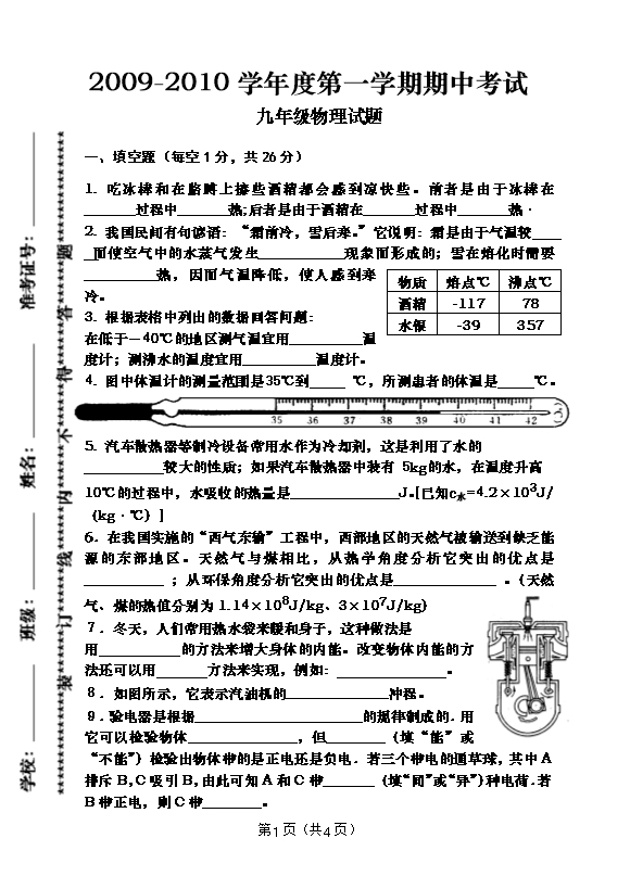- 下一份试卷:2009年秋期九年级期中调研测试物理试卷及答案