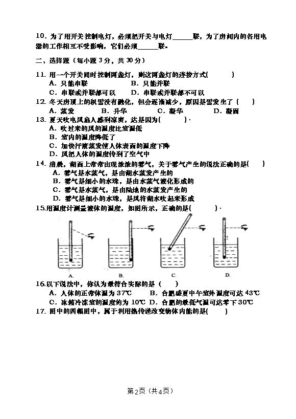 09-10沪科版九年级上学期期中考试物理试题(含答案)