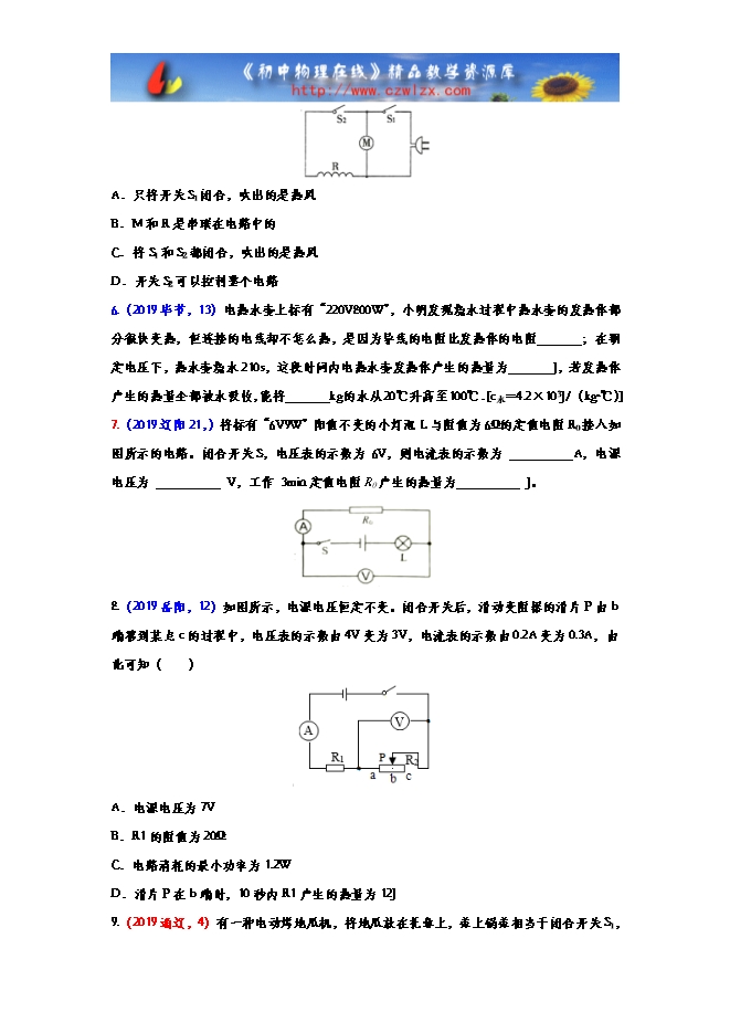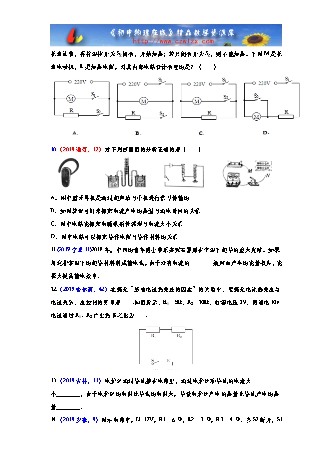 2019年中考物理试题分类汇编(五)——57焦耳定律专题(word版含答案)