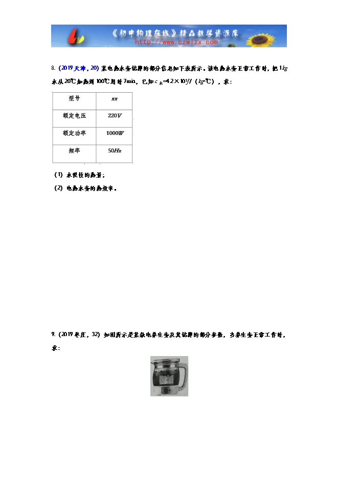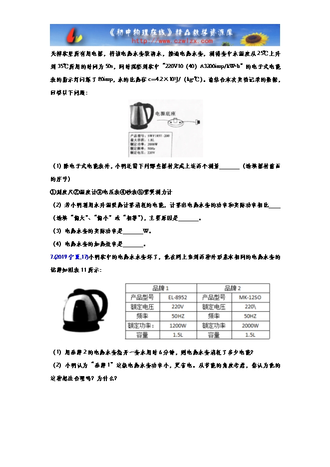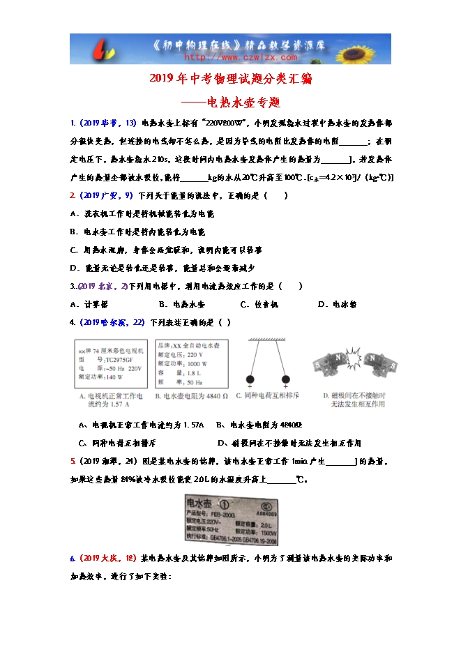 2019年中考物理试题分类汇编(五)——58电热水壶专题(word版含答案)