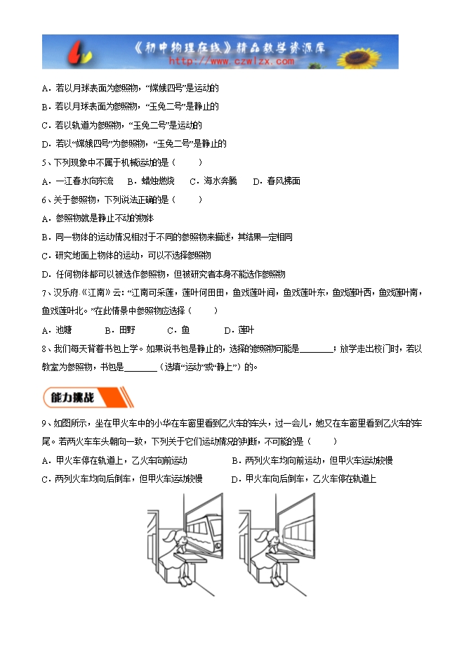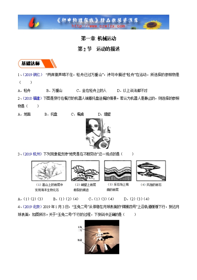 【精品备课】2019-2020学年人教版八年级上册物理系列:1.2运动的描述(课件 素材 教案 同步练习)