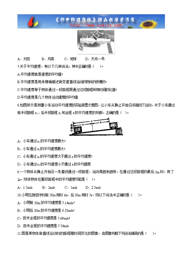 - 752025-2026人教版物理八年级上册培优卷:第一章 机械运动(附解析)