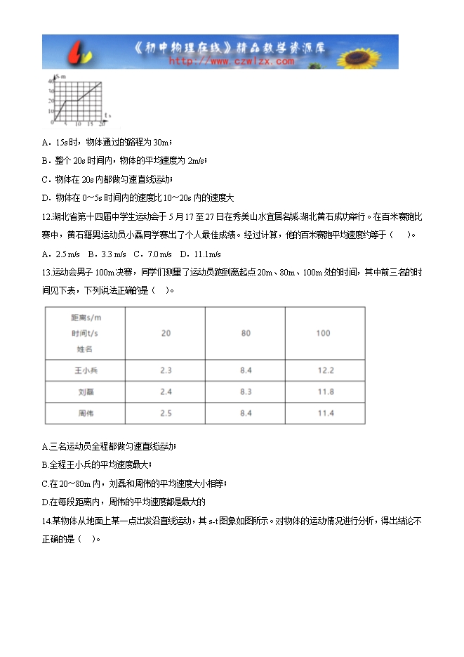 2019-2020学年八年级物理分章考点讲、析与提高专题:1.机械运动(单元提升检测卷)(人教版)