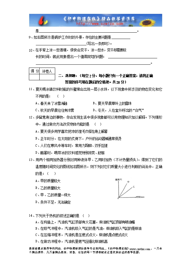 9、如右图所示是锅炉工作时的外景,存在的主要问题是