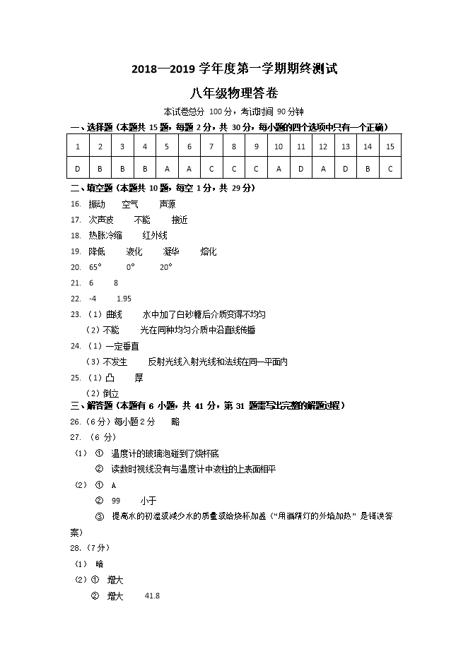 【学霸智慧课堂】2019-2020学年八年级上册物理(人教版,打包课后训练,pdf版)