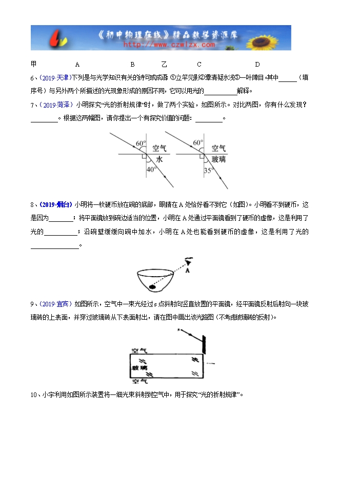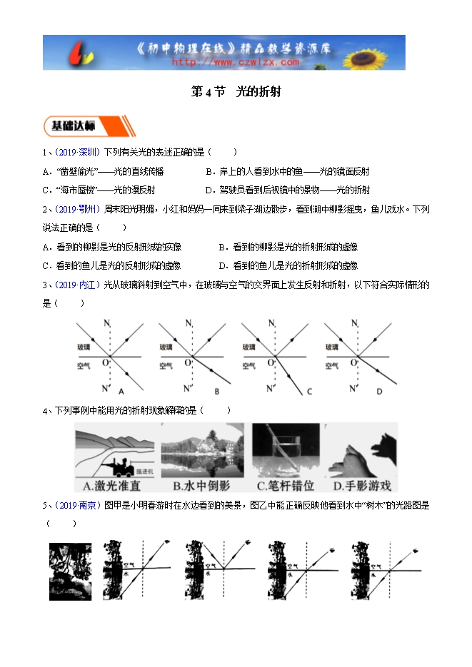 【内容简介】【精品备课】2019-2020学年人教版八年级上册物理系列:4.4光的折射(课件 素材 教案 同步练习)