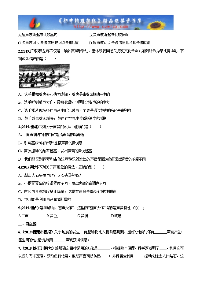 - 1562020-2021学年沪科版八年级全一册物理精讲精练专辑:3.3 超声与次声(原卷版和解析版)